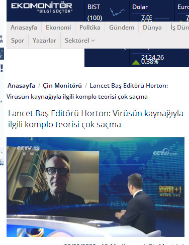 土耳其經(jīng)濟(jì)觀察網(wǎng):《柳葉刀》總編霍頓稱與病毒來源相關(guān)的陰謀論很可笑