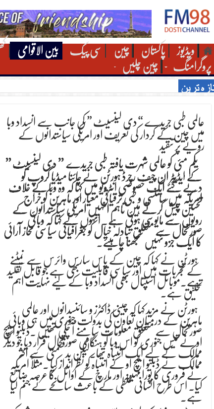 巴基斯坦FM98中巴友誼網(wǎng)報(bào)道↓