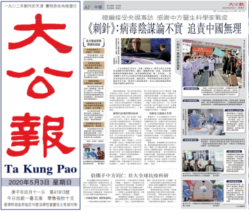 《大公報(bào)》:《柳葉刀》總編“病毒陰謀論不實(shí) 追責(zé)中國無理”↓