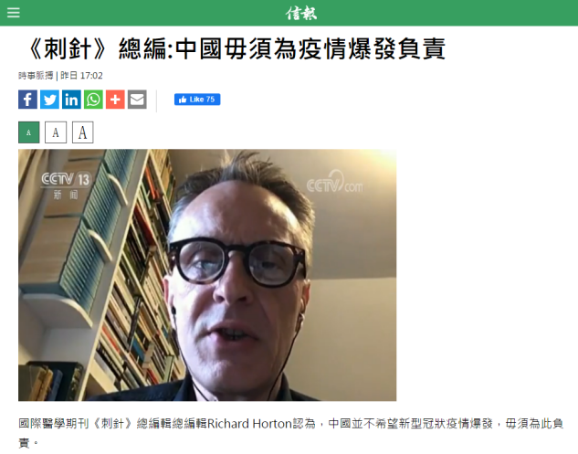 《信報(bào)》:《柳葉刀》總編“中國毋須為疫情暴發(fā)負(fù)責(zé)”↓