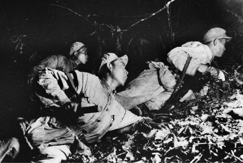 在1952年秋季的上甘嶺戰(zhàn)役中,中國人民志愿軍與6萬多敵人浴血激戰(zhàn)43天,打退其900多次進(jìn)攻,堅(jiān)守住了陣地,斃傷俘敵2.5萬余人,體現(xiàn)了大無畏的革命英雄主義和愛國主義、國際主義精神。圖為堅(jiān)守在坑道里的戰(zhàn)士夜間出擊。 新華社發(fā)