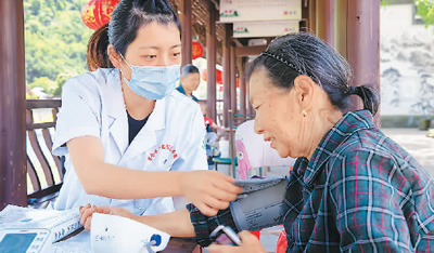 浙江省杭州市淳安縣中醫(yī)院醫(yī)共體瑤山衛(wèi)生院的醫(yī)護(hù)人員在淳安縣何家村開展義診活動(dòng)。