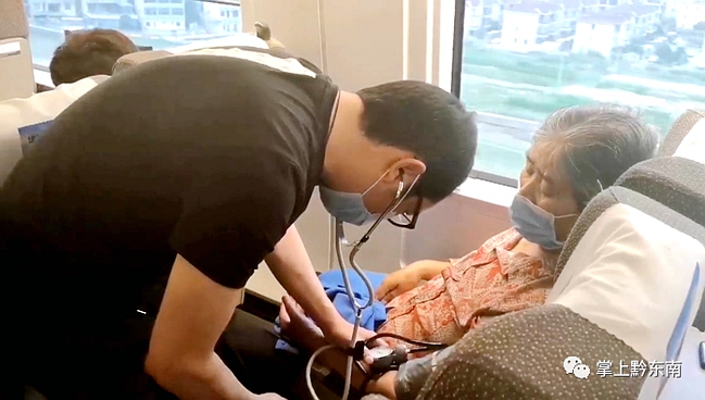 5月24日傍晚,在貴陽(yáng)開(kāi)往南京的G1378次列車上,一位患有膽管癌的老人突發(fā)高血壓癥狀。老人的兒子傅先生看到母親手抖且表情痛苦,趕緊向列車工作人員請(qǐng)求幫助。