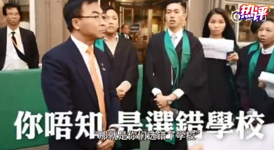 還記得2017年底那段在網(wǎng)上熱傳的視頻:在香港專業(yè)進(jìn)修學(xué)院的畢業(yè)典禮上,兩名畢業(yè)生因在奏國歌時拒絕肅立而被驅(qū)離現(xiàn)場。校長陳卓禧嚴(yán)正回應(yīng):“我們是愛國愛港的學(xué)校,必須高舉愛國旗幟,這是沒有妥協(xié)的余地的。即使在殖民地的年代,我們也沒有退縮過,我們沒放棄過我們愛國的立場。你如果不知道這些,你就是選錯了學(xué)校!”