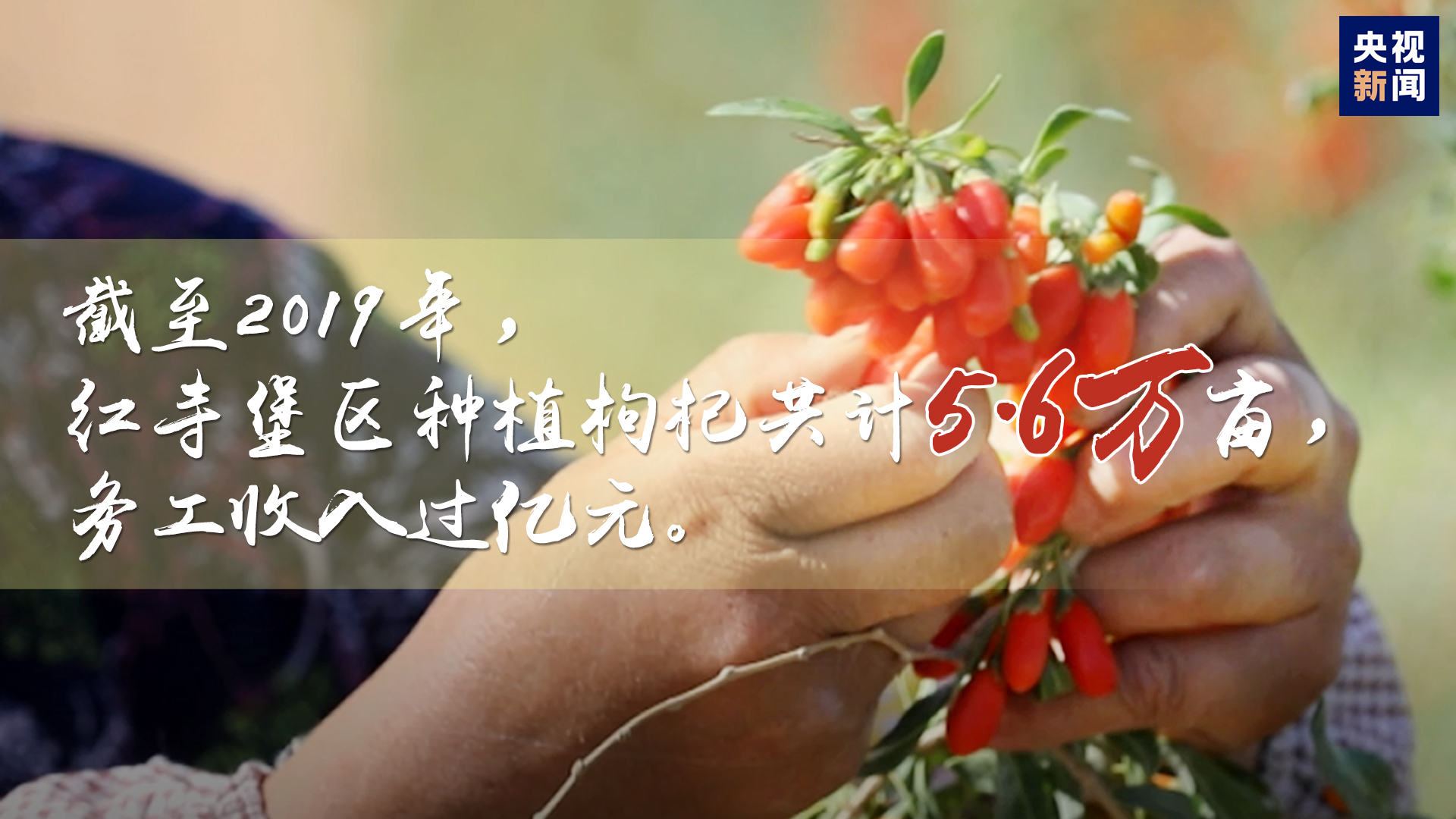 2019年,紅寺堡區(qū)種植枸杞共計5.6萬畝,枸杞年產值逾3.36億元。創(chuàng)造務工收入過億元。當?shù)卮迕駜H靠摘枸杞就能掙兩千七八到三千元錢。
