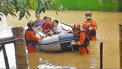 7月5日,云南孟連傣族拉祜族佤族自治縣連續(xù)強降雨,多名群眾被大水圍困。接報后,消防人員迅速趕往救援,先后將被困群眾轉(zhuǎn)移到安全地帶。