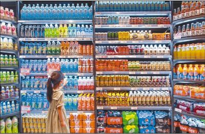 7月9日,一名小朋友在河北省邯鄲市一家超市購買飲料。