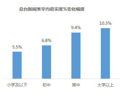 收視結(jié)構(gòu)進(jìn)一步優(yōu)化,年輕觀眾收視占比提升最為明顯?偱_(tái)新聞節(jié)目觀眾粘性增加,大學(xué)以上高學(xué)歷觀眾平均忠實(shí)度提升更多。