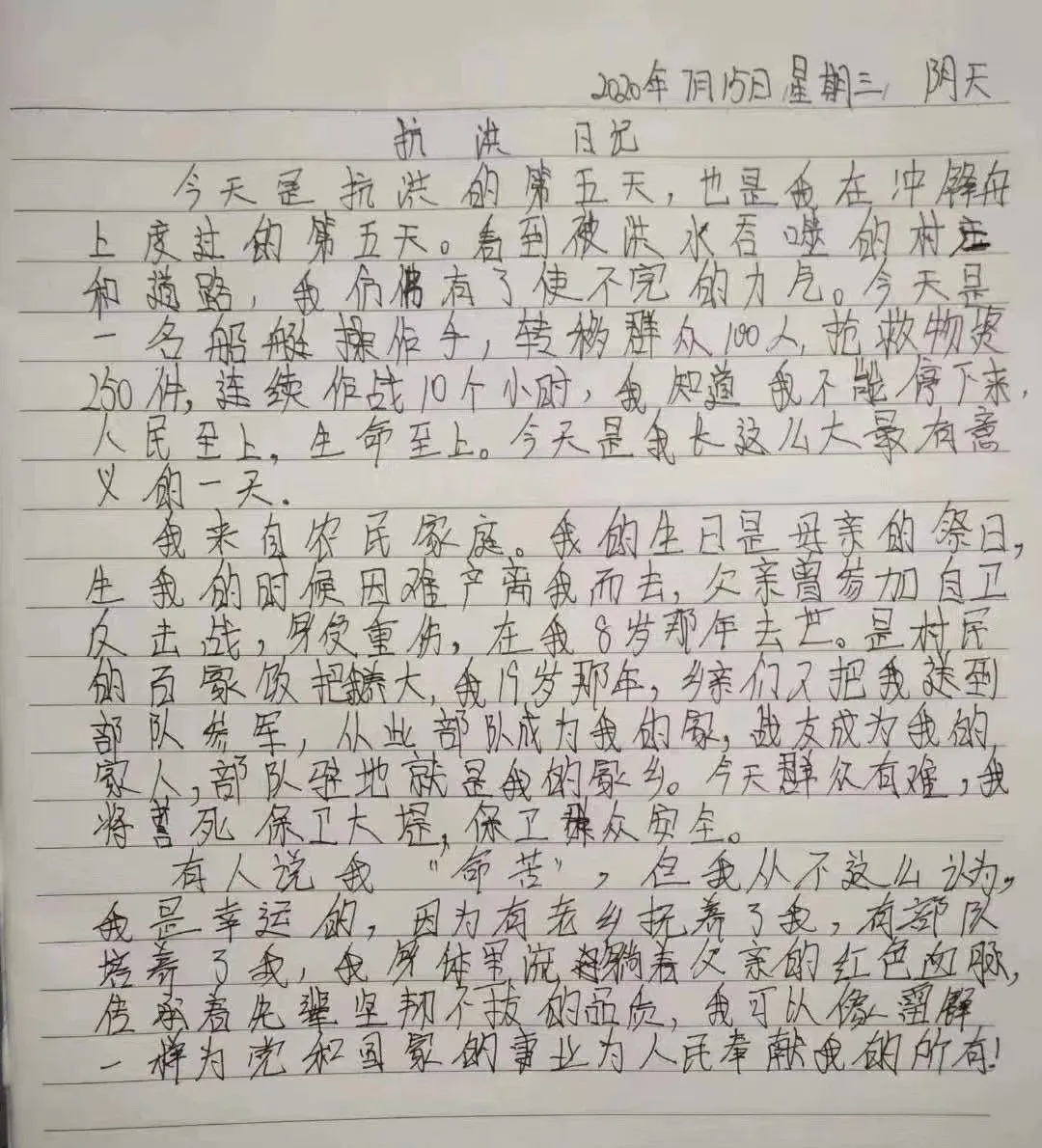 還和戰(zhàn)友一起加固堤壩50余米