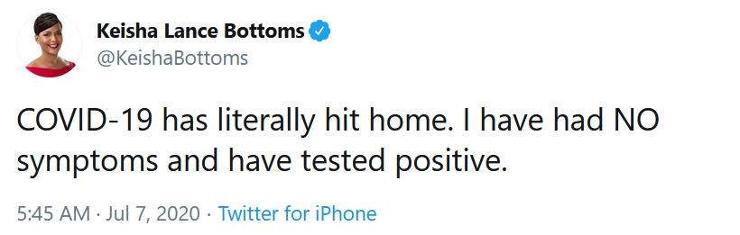 亞特蘭大市市長(zhǎng)鮑特姆斯在社交平臺(tái)上稱自己確診新冠肺炎