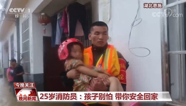 有奮勇的搶險(xiǎn),還有溫情的故事。17日在湖北恩施發(fā)生了這樣感人的一幕,95后消防員張士倫在搜救中發(fā)現(xiàn)一名5歲小女孩神情恐慌,將自己的頭盔摘下來(lái)為小女孩戴上,并與她聊天安撫她的情緒,將其抱到安全地帶。
