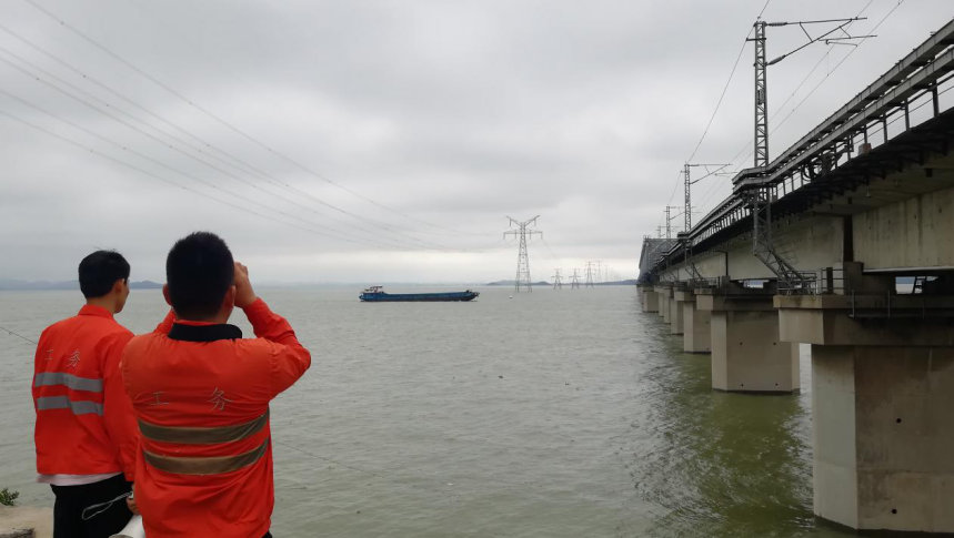 央視網(wǎng)消息(記者 康彥龍 通訊員 丁波 王浩):“我們24小時(shí)守在橋上,就是要確保大橋和列車安全。”九江橋工段琵琶湖路橋養(yǎng)修工區(qū)工長(zhǎng)黨頡明正手握望遠(yuǎn)鏡,用眼睛逐段“掃描”著鄱陽(yáng)湖廣闊的湖面。