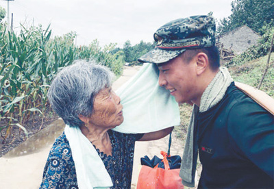 作為一名年輕的戰(zhàn)士,我只是做了自己力所能及的一件小事。臨別前,老奶奶用毛巾為我擦了擦汗。看到她的笑容,我也忍不住笑了,這種笑是發(fā)自內心的。