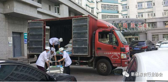 7月25日,新疆糧食行業(yè)協(xié)會(huì)會(huì)員企業(yè)—新疆天山面粉(集團(tuán))北站有限責(zé)任公司、西格爾糧油有限公司及愛心糧油企業(yè)山東龍大糧油有限公司為新疆醫(yī)科大學(xué)第五附屬醫(yī)院堅(jiān)守在一線的醫(yī)務(wù)人員們送去了面粉和清油。
