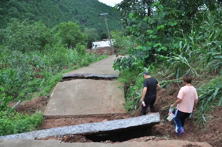 △村道在山體滑坡中崩裂