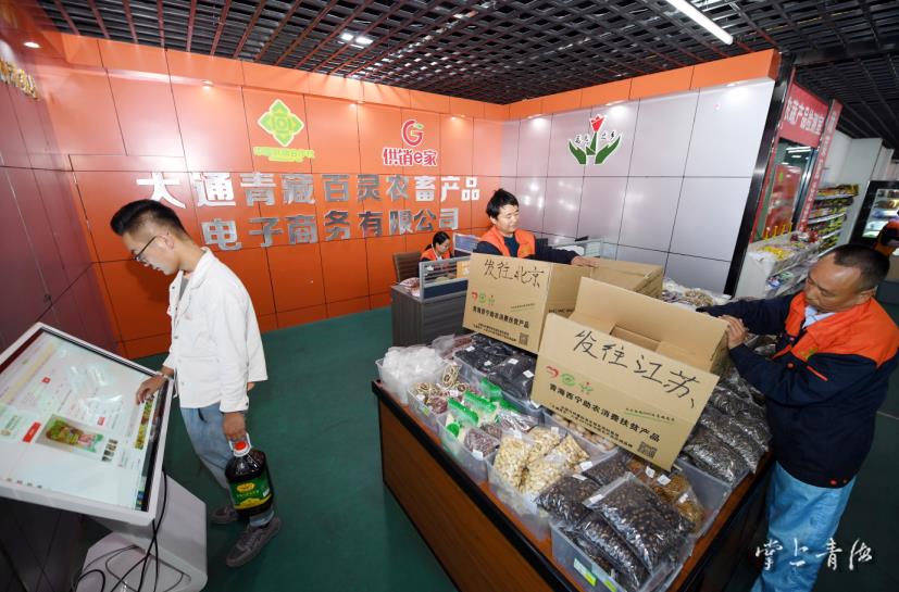 電商工作人員將青海特色產(chǎn)品發(fā)往全國(guó)各地。