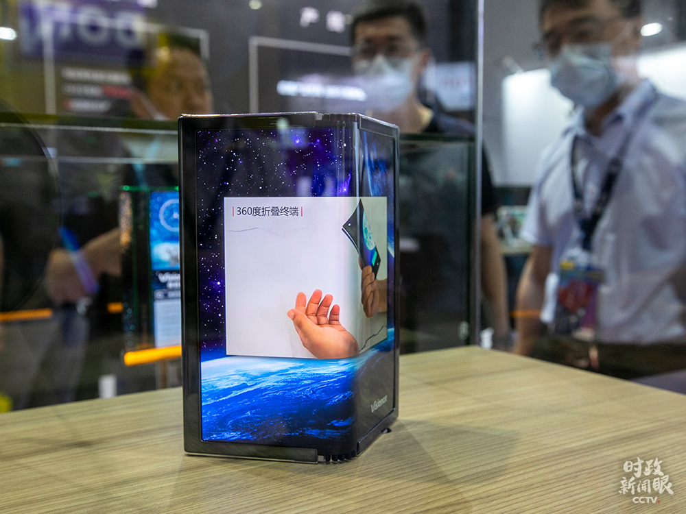 △2020國(guó)際顯示技術(shù)及應(yīng)用創(chuàng)新展7月在上海舉行,這是一款柔屏手機(jī)。