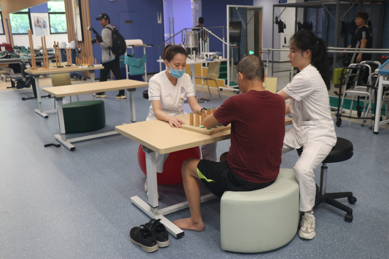 醫(yī)護(hù)人員正在幫助患者進(jìn)行康復(fù)訓(xùn)練