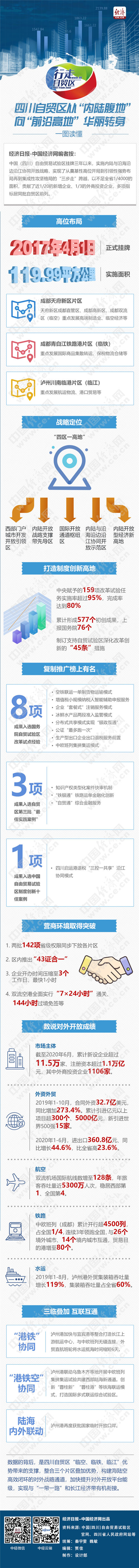 經(jīng)濟(jì)日?qǐng)?bào)-中國(guó)經(jīng)濟(jì)網(wǎng)編者按:中國(guó)(四川)自由貿(mào)易試驗(yàn)區(qū)掛牌三年以來(lái),實(shí)施內(nèi)陸與沿海沿邊沿江協(xié)同開(kāi)放戰(zhàn)略,實(shí)現(xiàn)了從奠基性高位開(kāi)局到引領(lǐng)性強(qiáng)勢(shì)布局再到集成性攻堅(jiān)格局的“三步走”跨越,以不足全省1/4000的面積,貢獻(xiàn)了近1/20的新增企業(yè)、1/3的外商投資企業(yè),多項(xiàng)指標(biāo)居同批自貿(mào)區(qū)前列。