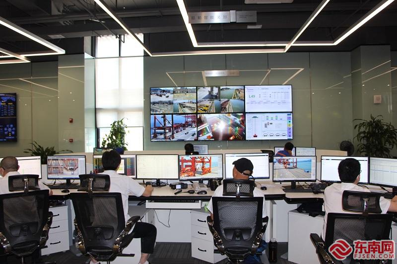 媒體代表團(tuán)一行還來到了位于廈門東渡港區(qū)的廈門國際航運(yùn)科創(chuàng)中心,該中心外觀酷似一個(gè)巨大的集裝箱,現(xiàn)場工作人員微調(diào)搖桿,電腦屏幕上顯示著碼頭前沿集裝箱橋吊的視頻畫面,在中心里就可以通過遠(yuǎn)程控制完成碼頭裝卸貨物。