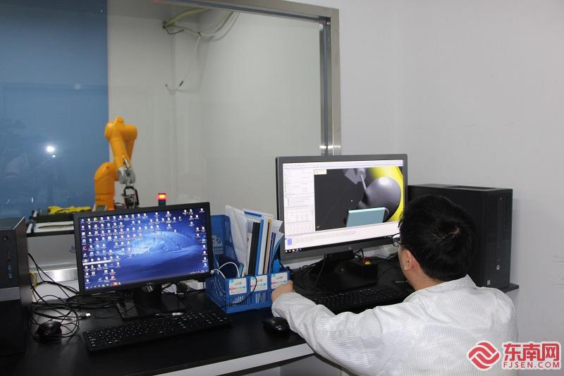 科湖摩爾實(shí)驗(yàn)室,技術(shù)人員正在為手機(jī)做電磁波輻射的測試。東南網(wǎng)記者 盧金福 攝