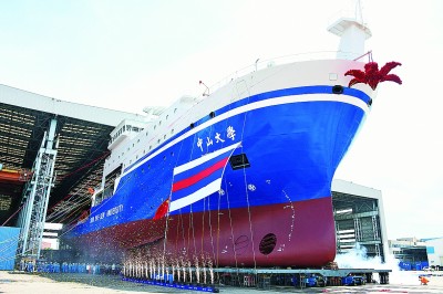 8月28日,我國最大海洋綜合科考實習(xí)船“中山大學(xué)”號在上海長興島江南造船下水,中國科學(xué)院院士、中山大學(xué)校長羅俊為這艘高大威武的科考實習(xí)船命名剪彩,希望“中山大學(xué)”號承載起向海求索的使命與擔(dān)當(dāng),承載起興海強(qiáng)國的光榮與夢想,挺進(jìn)深藍(lán),劈波斬浪,順利平安!