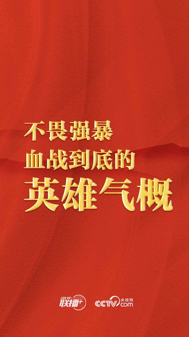 偉大抗戰(zhàn)精神,是中國人民彌足珍貴的精神財(cái)富,將永遠(yuǎn)激勵(lì)中國人民克服一切艱難險(xiǎn)阻、為實(shí)現(xiàn)中華民族偉大復(fù)興而奮斗。央視網(wǎng)《聯(lián)播+》四張海報(bào)與您共同感悟偉大抗戰(zhàn)精神,凝聚奮進(jìn)力量。