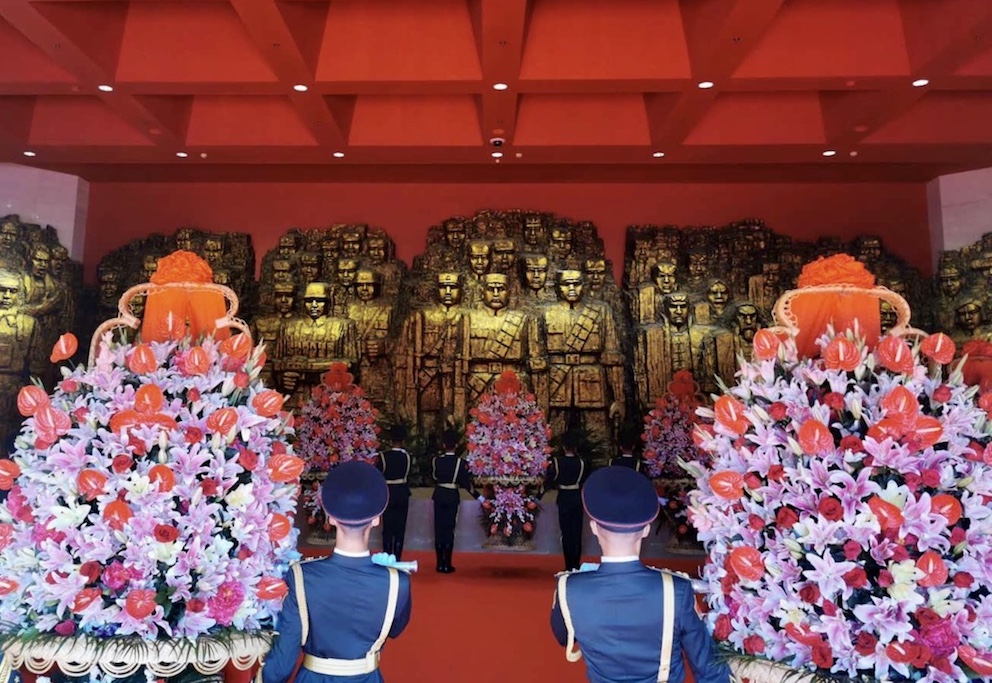 △禮兵將花籃抬入紀(jì)念館序廳。(總臺(tái)央視記者黃京輝拍攝)