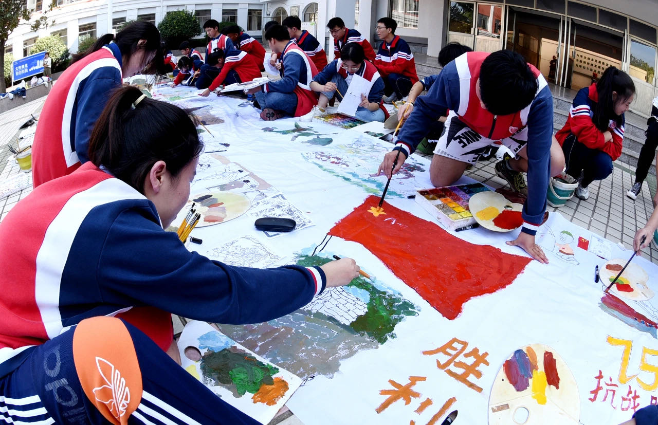 2020年9月3日,江蘇連云港市錦屏高級中學75名學生共同進行“銘記抗戰(zhàn)歷史,弘揚民族精神”紀念抗戰(zhàn)勝利75周年主題繪畫活動。