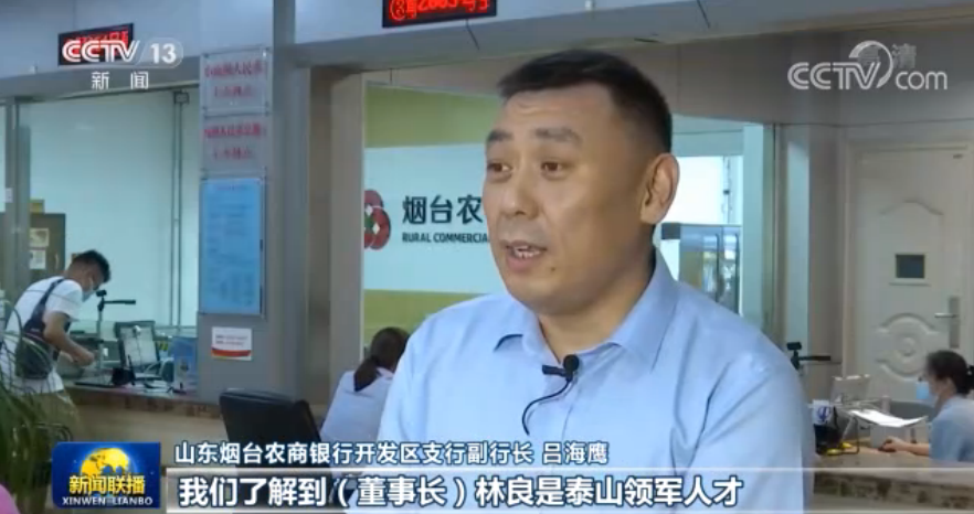 山東煙臺(tái)農(nóng)商銀行開發(fā)區(qū)支行副行長(zhǎng) 呂海鷹:我們了解到(董事長(zhǎng))林良是泰山領(lǐng)軍人才,(企業(yè))有許多國(guó)家專利符合我們的貸款條件,就憑一塊招牌,貸款發(fā)放300萬(wàn)(元)。