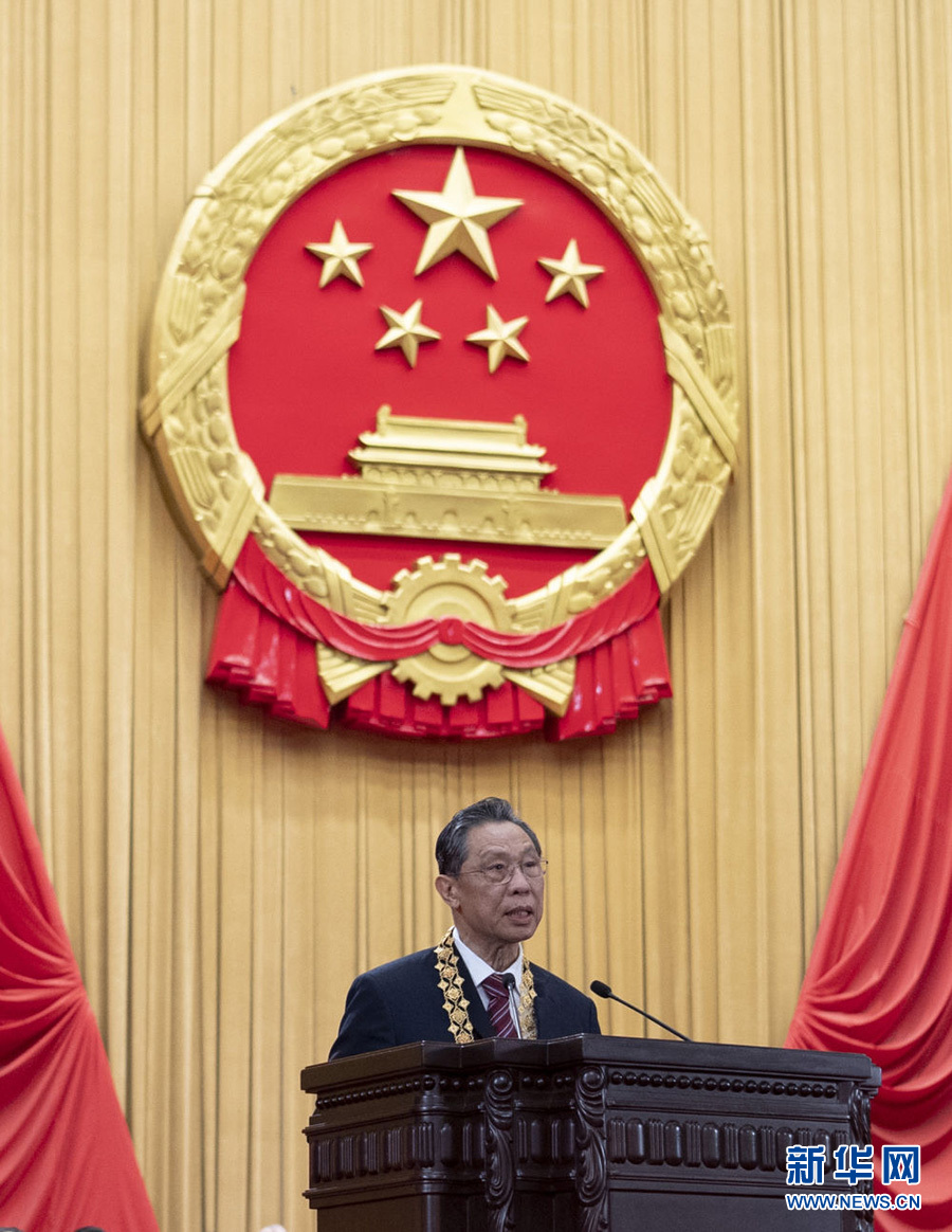 奏唱中華人民共和國國歌、向新冠肺炎疫情犧牲烈士和逝世同胞默哀、宣讀習(xí)近平簽署的中華人民共和國主席令……一項項莊嚴肅穆的議程,將會場氣氛逐漸推向高潮。