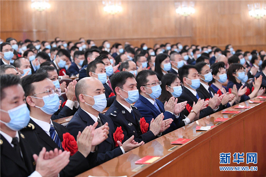 隨后,大會對全國抗擊新冠肺炎疫情先進個人和先進集體、全國優(yōu)秀共產(chǎn)黨員和全國先進基層黨組織進行了表彰。受表彰的個人和集體代表胸戴大紅花,走上主席臺,從習(xí)近平等黨和國家領(lǐng)導(dǎo)人手中接過獎?wù)隆⒆C書、獎牌。