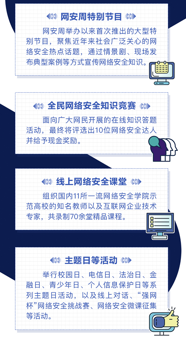 圖解:2020年國家網(wǎng)絡(luò)安全宣傳周亮點內(nèi)容一覽。