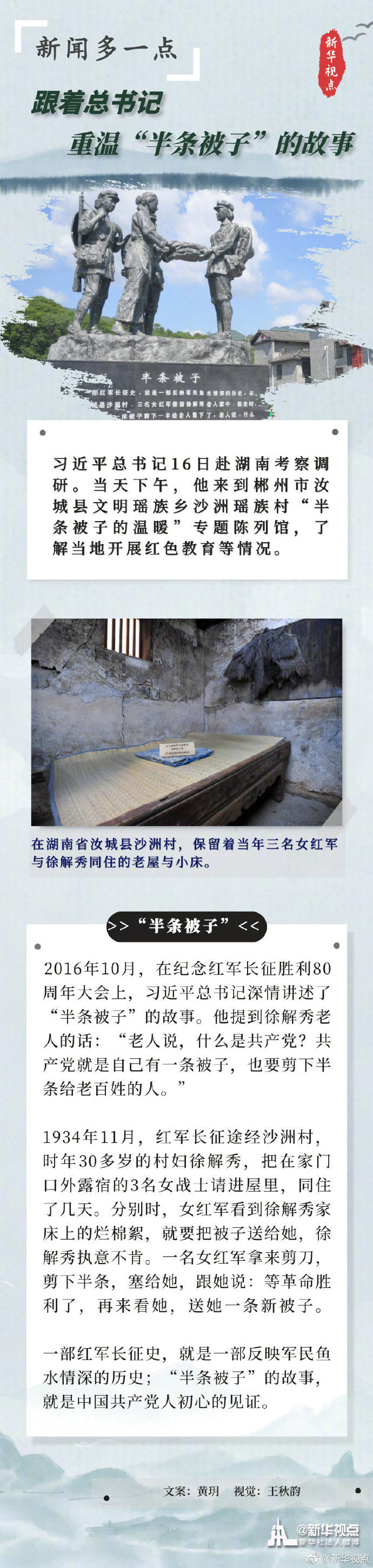 【習(xí)近平赴湖南考察調(diào)研】習(xí)近平總書記16日赴湖南考察調(diào)研。當(dāng)天下午,他來到郴州市汝城縣文明瑤族鄉(xiāng)沙洲瑤族村“半條被子的溫暖”專題陳列館、村服務(wù)中心和衛(wèi)生室、沙洲現(xiàn)代農(nóng)旅示范基地、文明瑤族鄉(xiāng)第一片小學(xué),以及村民家中,了解當(dāng)?shù)亻_展紅色教育、發(fā)展扶貧產(chǎn)業(yè)、鞏固脫貧成果等情況。(文字記者張曉松、朱基釵 攝影記者李學(xué)仁、謝環(huán)馳、岳月偉 )