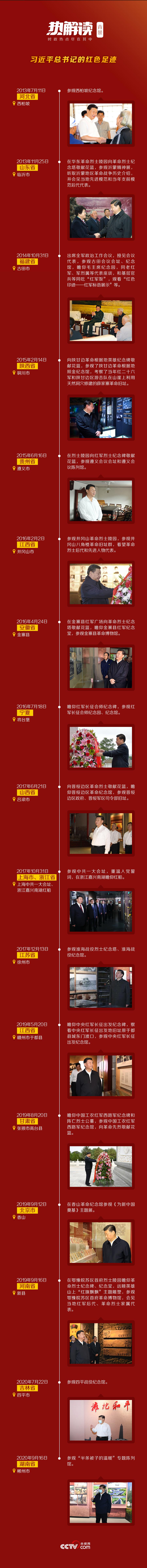 清波蕩漾的嘉興南湖、種滿故事的紅色土地于都、星星之火閃耀的井岡山……處處都留下了習(xí)近平總書記的串串紅色足跡。