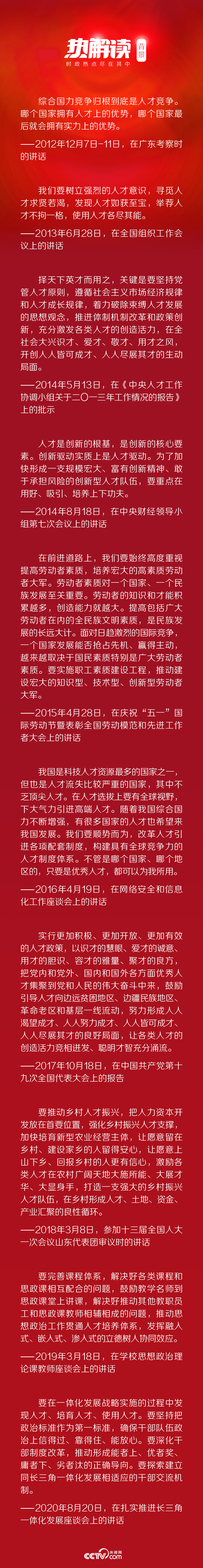 三個(gè)考察點(diǎn),總書記都關(guān)注到人才問題。從人才培養(yǎng),到人才儲(chǔ)備,再到人才使用,飽含總書記對(duì)新時(shí)代人才的期許。