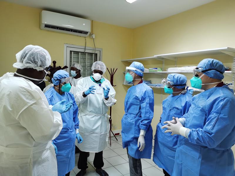 2020年5月2日,在吉布提布法醫(yī)院,中國(guó)抗疫醫(yī)療專(zhuān)家組與吉方人員就大規(guī)模檢測(cè)、無(wú)癥狀感染等問(wèn)題進(jìn)行交流