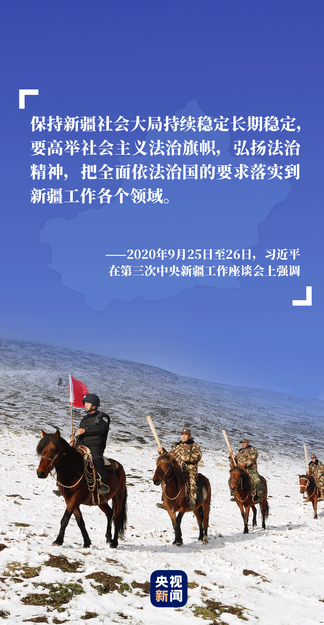 堅(jiān)持依法治疆、團(tuán)結(jié)穩(wěn)疆、文化潤疆、富民興疆、長期建疆,努力建設(shè)新時(shí)代中國特色社會(huì)主義新疆。9月25日至26日,習(xí)近平總書記在第三次中央新疆工作座談會(huì)上發(fā)表重要講話,深刻分析當(dāng)前和今后一個(gè)時(shí)期新疆工作總目標(biāo),全面闡釋新時(shí)代黨的治疆方略,為引領(lǐng)新疆工作守正創(chuàng)新、勝利前進(jìn)指明了方向。