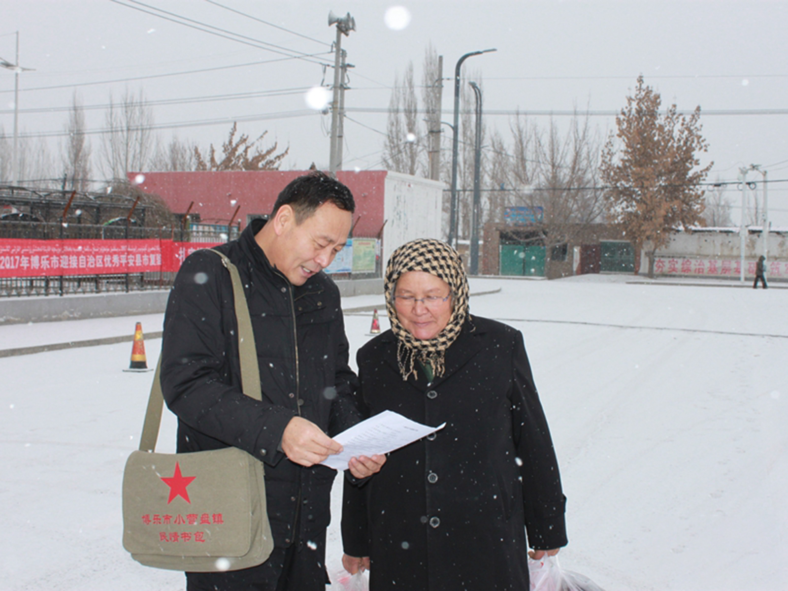 ▲ 2017年12月,新疆博樂市小營盤鎮(zhèn)的“書包干部”在走訪村民。