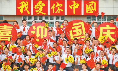河北省沙河市人民公園里花團(tuán)錦簇,上千名市民手持國旗、整裝列隊(duì),參加“慶雙節(jié)”跑步、徒步活動(dòng)。市民王力強(qiáng)說:“我們用綠色健康陽光的健身活動(dòng)來表達(dá)祝福,通過這種方式歡度雙節(jié),特別有意義!