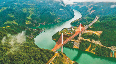 10月1日,貴州劍(河)榕(江)高速公路開通試運(yùn)營,實(shí)現(xiàn)全線通車。圖為當(dāng)日拍攝的劍榕高速清水江特大橋。