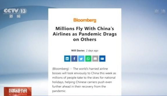 而彭博社的報道則把目光投向了航空業(yè)。報道說,本周,世界各地備受折磨的航空公司老板要將“嫉妒的目光”投向中國,因為數(shù)以百萬計的人將在國慶假日期間乘坐飛機出行,讓中國的航空公司在擺脫疫情、恢復(fù)常態(tài)上處于遙遙領(lǐng)先的位置。報道說,黃金周將為國內(nèi)經(jīng)濟反彈提供更多動力。