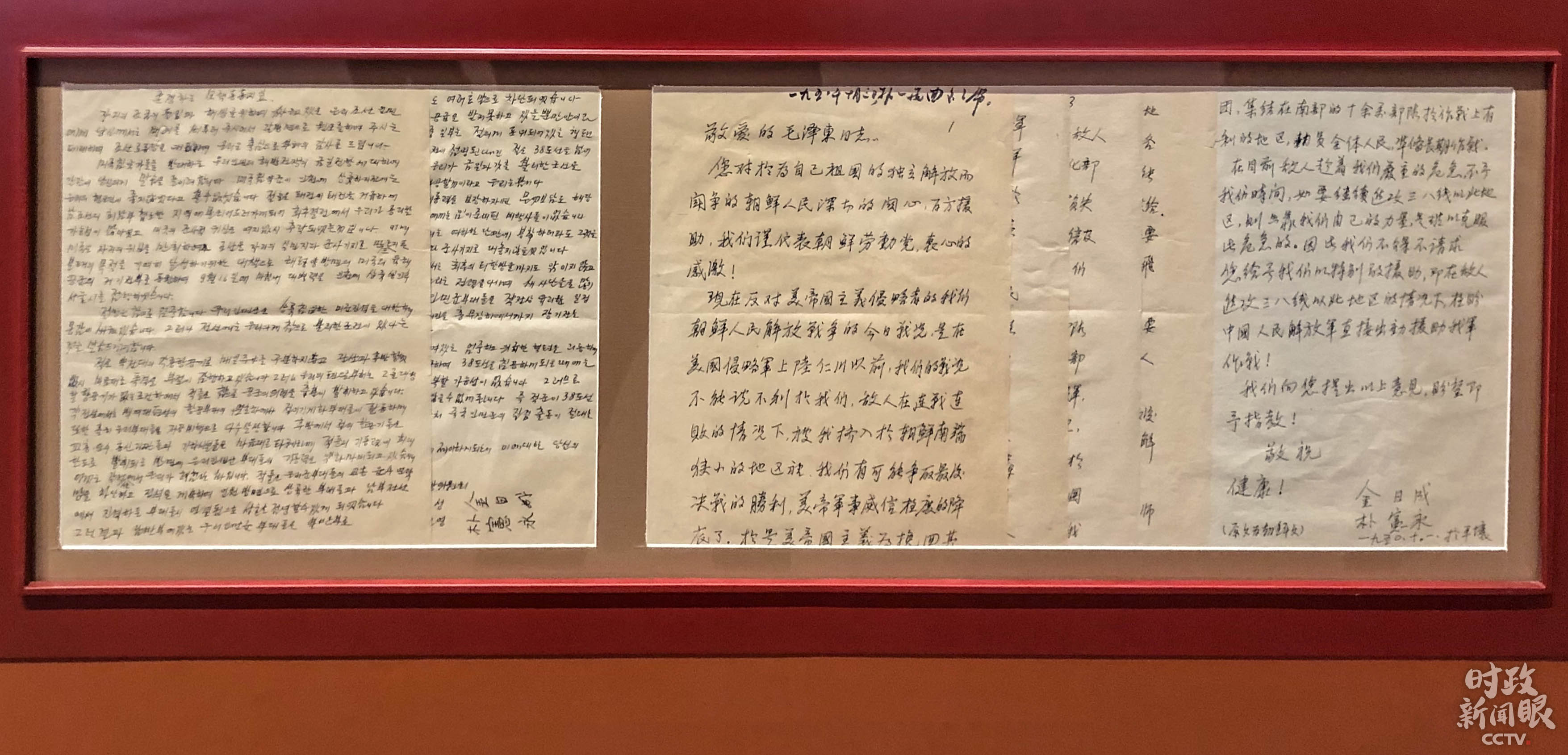 △這是1950年10月1日,金日成請(qǐng)求中國(guó)出兵援助朝鮮的信函和譯文。(總臺(tái)央視記者許永松拍攝)