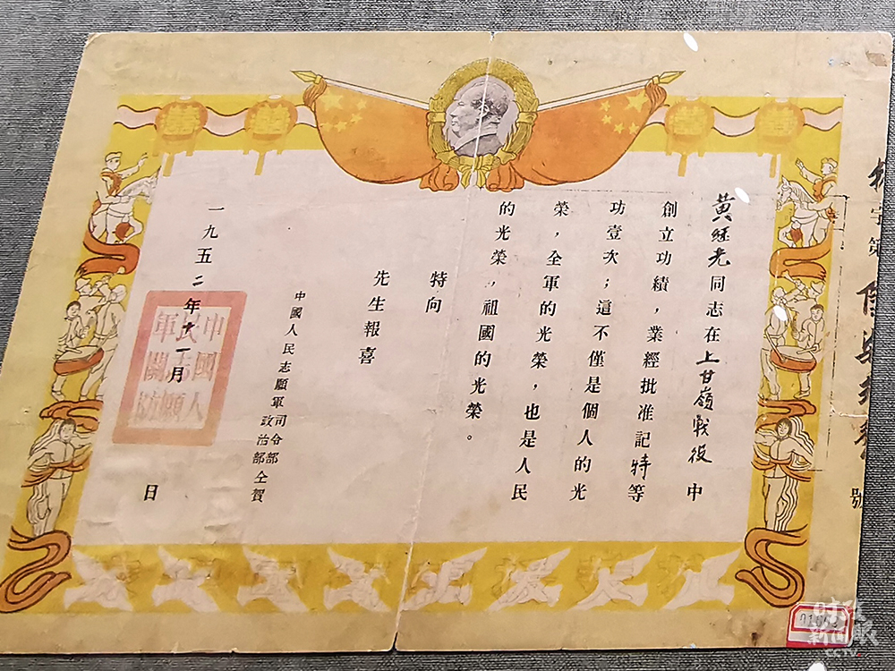 △黃繼光在上甘嶺戰(zhàn)役中榮立特等功。(總臺(tái)央視記者荊偉拍攝)