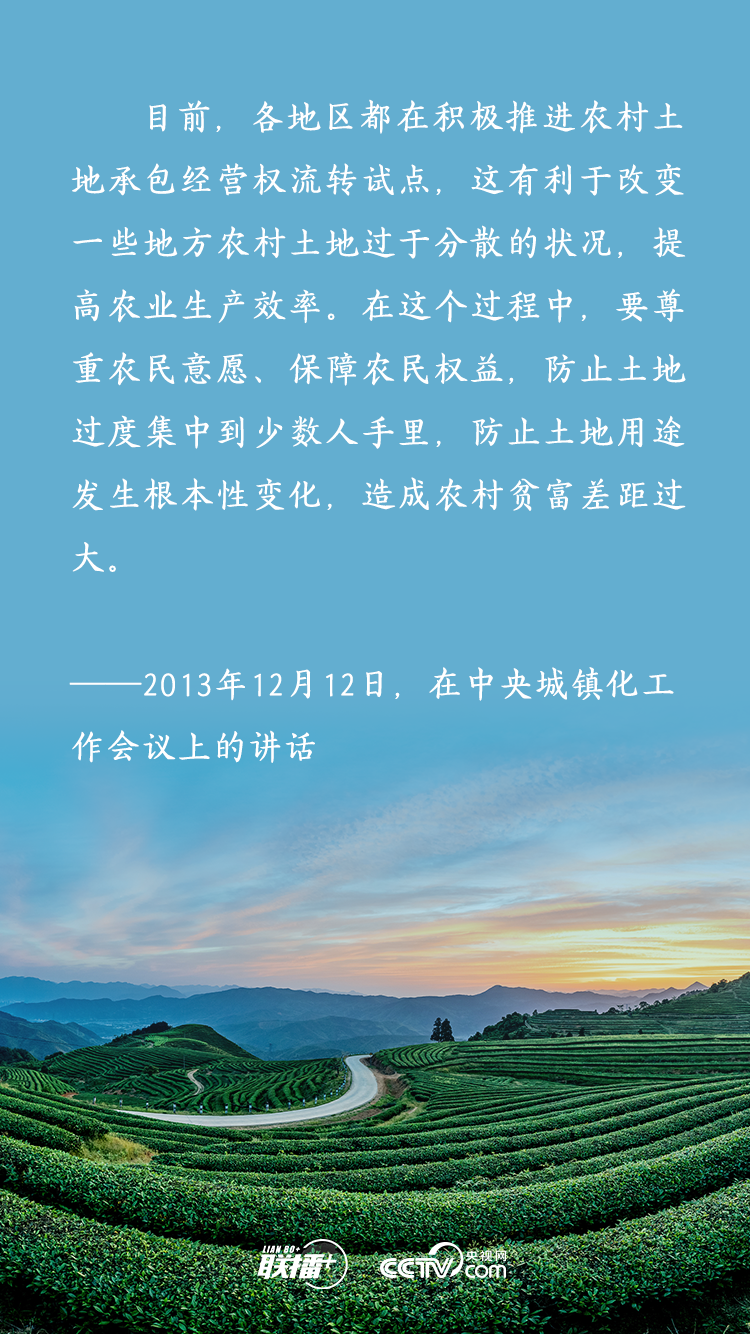 農(nóng)業(yè)農(nóng)村農(nóng)民問題是關(guān)系國計民生的根本性問題,農(nóng)村土地延包事關(guān)千家萬戶農(nóng)民切身利益,事關(guān)廣大農(nóng)村地區(qū)穩(wěn)定發(fā)展大計。黨的十八大以來,習(xí)近平總書記多次深入基層實(shí)地調(diào)研,召開多個重要會議,既從大處著眼,整體布局、謀定而動,又從小處入手,順勢而為、層層推進(jìn),為新時代推進(jìn)農(nóng)村土地制度改革、做好農(nóng)村承包地管理工作擘畫發(fā)展路徑。央視網(wǎng)《聯(lián)播+》特梳理,與您一起學(xué)習(xí)。