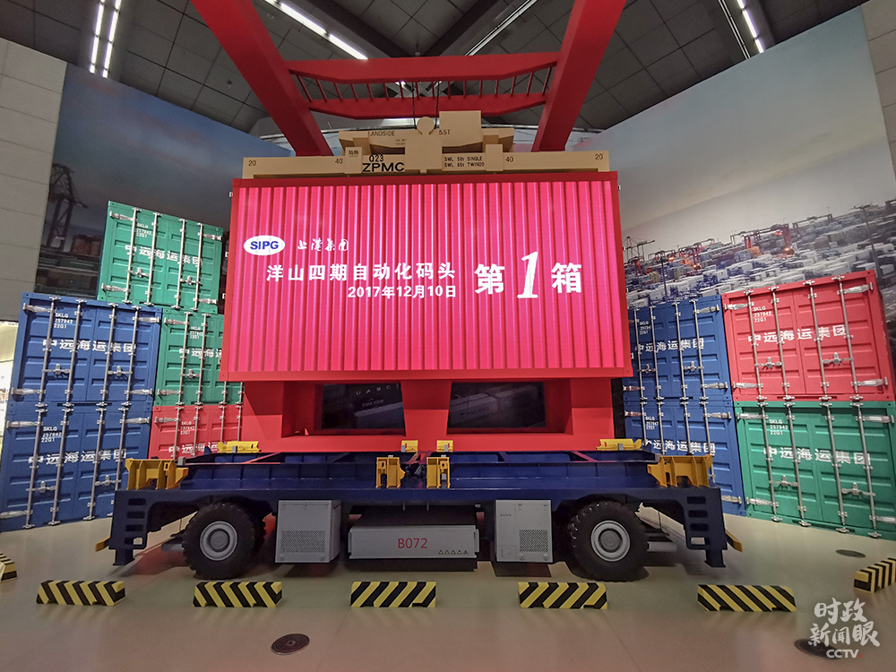 △“浦東開發(fā)開放30周年主題展”的洋山港展區(qū)(總臺央視記者王冰拍攝)