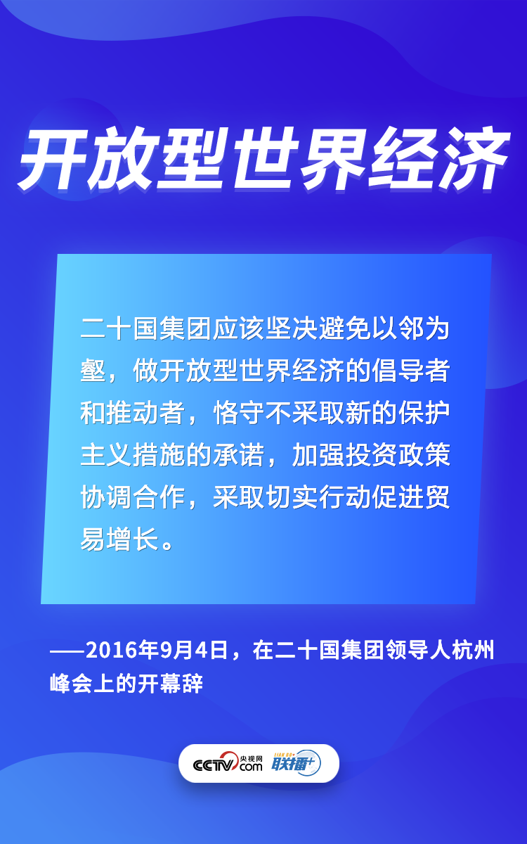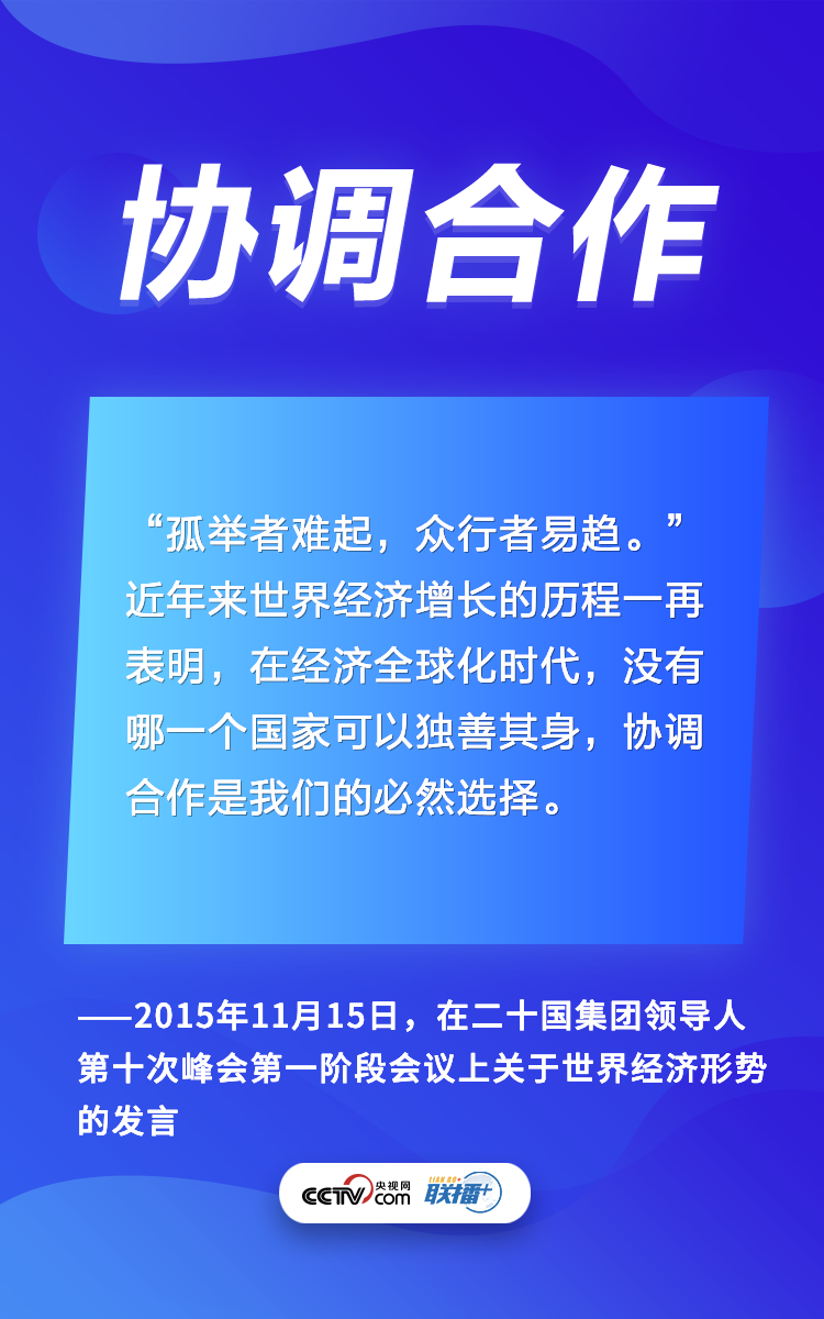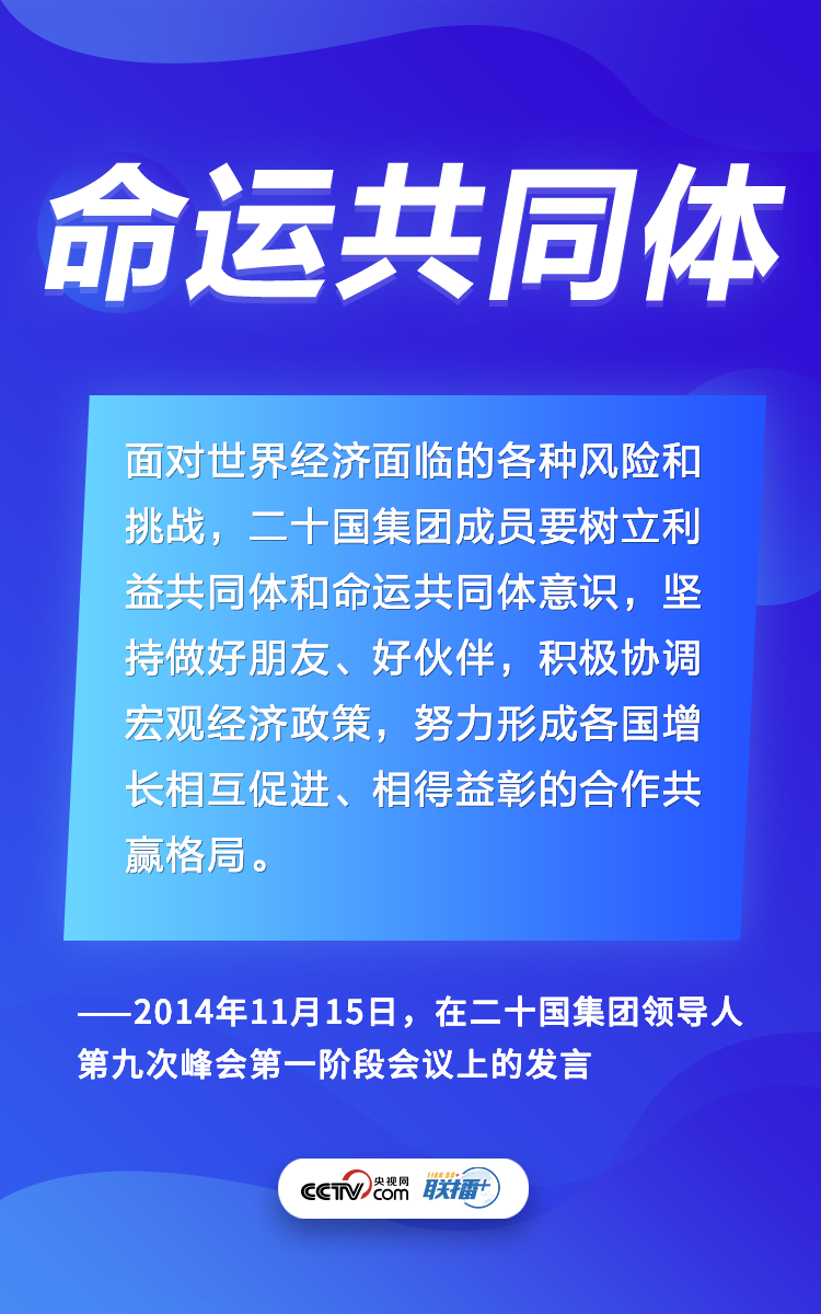 二十國集團(tuán)是國際經(jīng)濟(jì)合作主要論壇。多年來,習(xí)近平主席在峰會講話中倡議各國聯(lián)手,齊心協(xié)力應(yīng)對世界經(jīng)濟(jì)和全球治理的各種問題。央視網(wǎng)《聯(lián)播+》梳理習(xí)主席相關(guān)論述,與您一起學(xué)習(xí)體會。