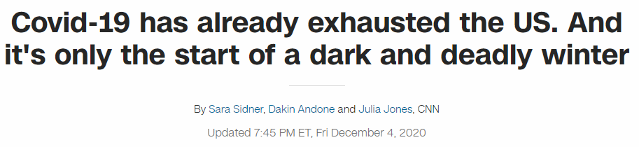 美國有線電視新聞網(wǎng)(CNN)報道指出,疫情已經(jīng)讓美國筋疲力盡,而“黑暗、致命的冬天”才剛剛開始。