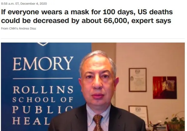 這一模型還預測,如果所有民眾都能夠堅持佩戴口罩100天,到明年4月1日,大約6.6萬名美國人的生命可以被挽救。