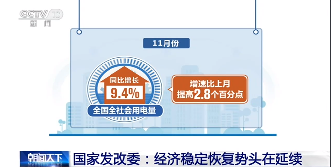 11月份,全國規(guī)模以上工業(yè)發(fā)電量同比增長6.8%,增速比上月提高2.2個(gè)百分點(diǎn)。同時(shí),全國全社會(huì)用電量同比增長9.4%,增速比上月提高2.8個(gè)百分點(diǎn)。在投資項(xiàng)目審批方面,11月份,國家發(fā)展改革委共審批核準(zhǔn)固定資產(chǎn)投資項(xiàng)目26個(gè),總投資3704億元,主要集中在交通、信息化和能源等領(lǐng)域。
